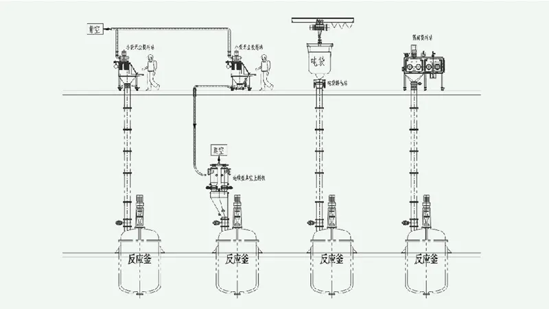 (Shown: Our technicians installing a screw conveying and weighing silo, and a moisture- and oxygen-free weighing and packaging isolator.)