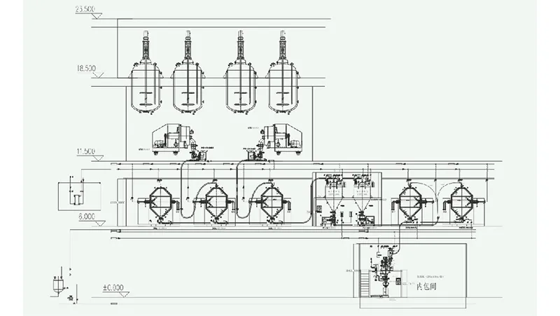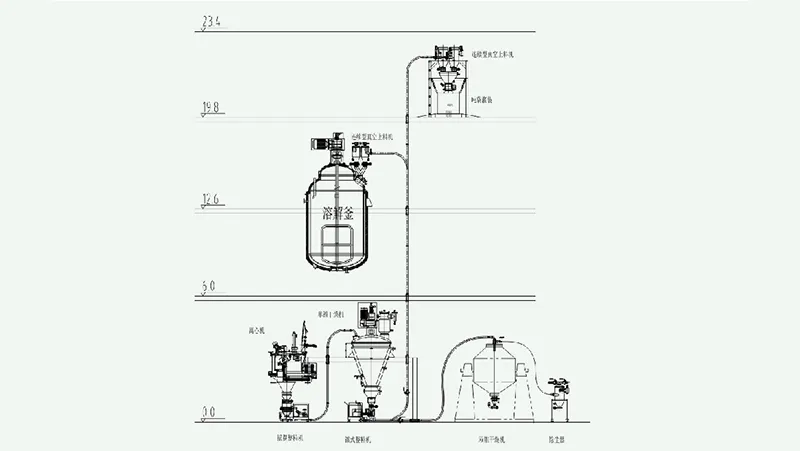 Granulation–drying–temporary storage–crushing–mixing–packaging production line